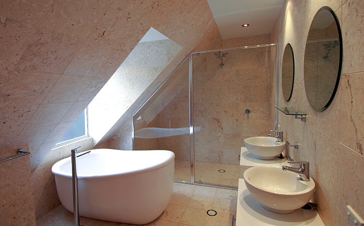 The second main move, was a separate master suite on the upper level of the house. This level was rearranged to include the master bedroom, plus an ensuite, study and walk-in robe. New openings on the northern elevation, also take advantage of views to the Harbour.