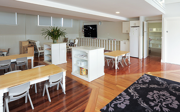 Internally the building is of a domestic scale and finish, to provide well scaled spaces for children. The whole building was efficiently planned to accommodate a tight brief, required amenities, a residence and forms a practical and energy efficient reuse for an existing building, within an older suburban environment.