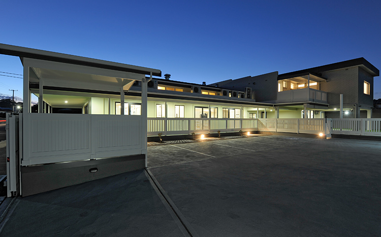 A refurbished flat is located at the rear of the centre. The open section of the site has been divided between parking for twelve cars, including six staff spaces and six visitor spaces, including one disabled car space. The original building has been softened by the addition of new veranda spaces and entry gateway.