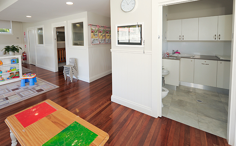 Internally the building is of a domestic scale and finish, to provide well scaled spaces for children. The whole building was efficiently planned to accommodate a tight brief, required amenities, a residence and forms a practical and energy efficient reuse for an existing building, within an older suburban environment.
