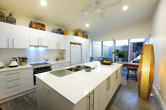After the demolition stage we added the additions of a bathroom and kitchen/Dining area. We also renovated the second level to incorporate a new en-suite from the main bedroom, revamping old set white plaster on the walls a high required a attention to detail to ensure that we achieved a high quality and smooth finish.