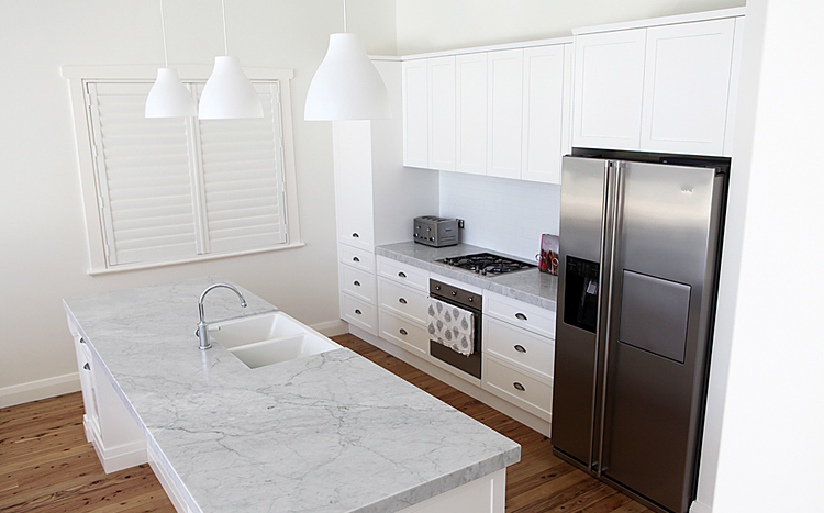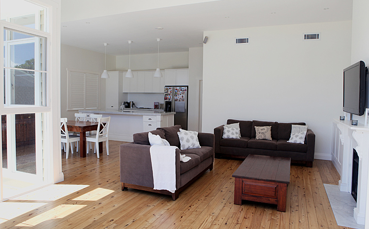 Downstairs we added an open plan living room/dining, new kitchen and my favourite... the internal laundry. The old formal dining room was converted into the main bathroom and new joinery was added to the 2 kids rooms (in the original part of the house).